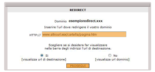 Il servizio Redirect permette di registrare un dominio destinando la pagina iniziale all'indirizzo da voi scelto.