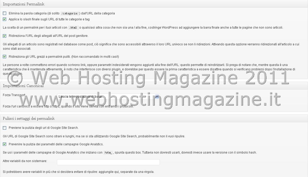Questo opzione è relativa ovviamente alle impostazioni Permalink SEO di Yoast, ed aggiunge delle impostazioni ulteriori a quelle di WordPress.